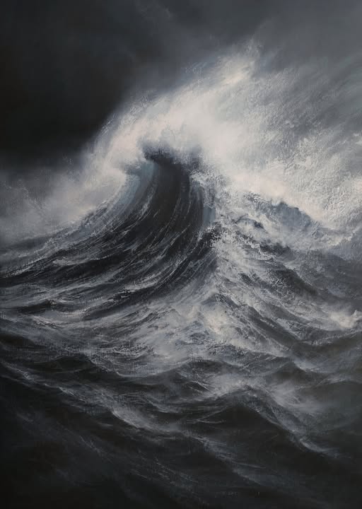 "Sztorm" ,2024,pastel olejny,70/100 cm , w ramie 80/110 cm Cena 7000 PLN